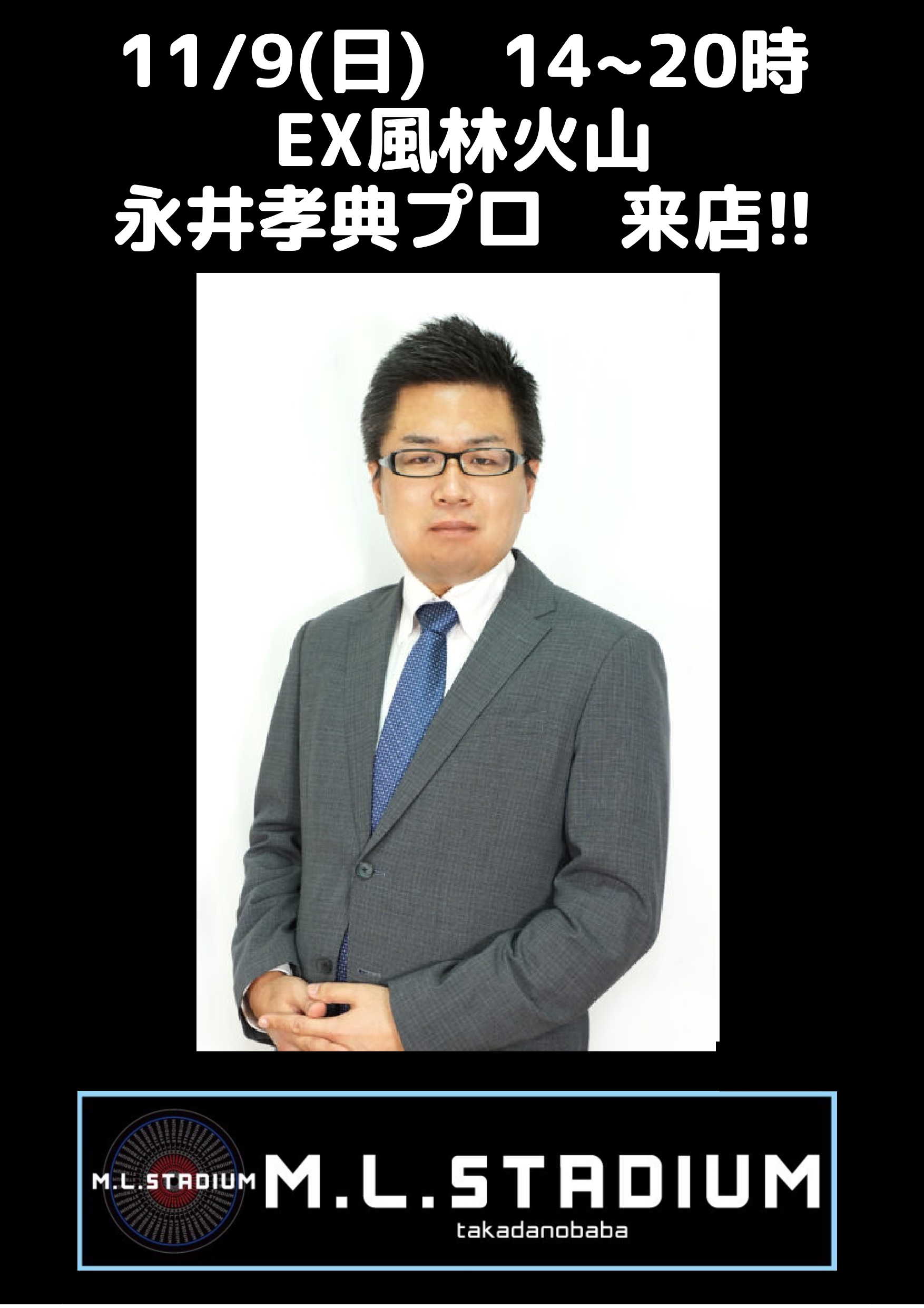 11/9㈰14-20時EX風林火山所属永井孝典プロがゲストでご来店✨同卓抽選は10/27㈪より受付開始!